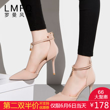 2017春夏季新款一字扣绑带尖头高跟鞋女细跟性感黑色职业单鞋女鞋