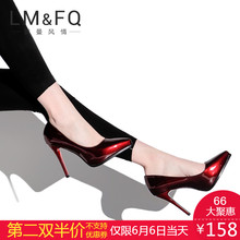 春季浅口红色尖头高跟鞋细跟性感女鞋职业OL一字扣绑带单鞋女婚鞋