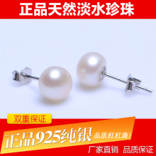 经典款正品天然淡水珍珠耳环925纯银珍珠耳钉强光无瑕珍珠耳饰