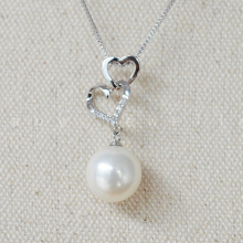 纯银S925吊坠 海水母贝珍珠吊坠项链颈饰 心心相印款吊坠短款锁骨