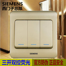 西门子开关 插座面板 插座 远景金棕系列三开双控荧光