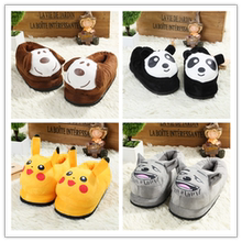 包邮毛毛鞋熊猫兔子龙猫海绵宝宝卡通可爱女全包跟棉拖鞋情侣棉鞋