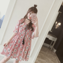 实拍胖MM夏新款加肥超大码女喇叭袖松紧小清新中长款连衣裙200斤