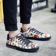 夏季新款2017潮牌港仔个性男士印花板鞋青少年百搭学生花布潮鞋男