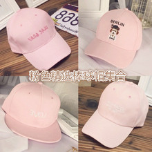 韩国纯色字母粉色棒球帽子女韩版夏天鸭舌帽潮防晒原宿遮阳嘻哈帽