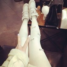日系蝴蝶结踩脚连裤袜白色不透肉防勾丝抗起球加厚毛圈打底袜子