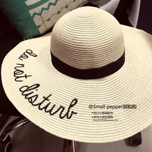 韩国字母刺绣大檐帽草帽女士夏 海边沙滩帽度假遮阳遮脸防晒帽子