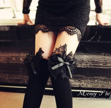 蕾丝长筒袜过膝袜黑色蝴蝶结高筒女袜秋冬天性感显瘦大腿袜袜