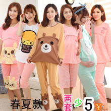 休闲时尚月子服夏纯棉哺乳衣薄款孕妇喂奶睡衣产后夏装套装可外穿