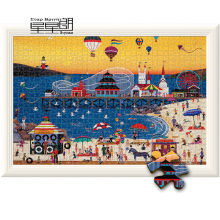 进口品质1000片木质拼图500 卡通动漫成人玩具 夏日海边小镇 灯塔