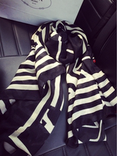17年春秋季新款 欧美黑白简约长款丝巾 时尚围巾披肩夏 防晒纱巾