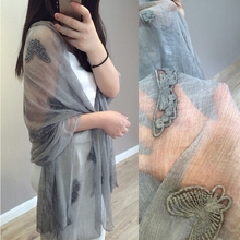 精致蝴蝶刺绣真丝丝巾沙滩防晒披肩女长款复古桑蚕丝围巾夏季