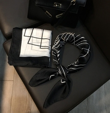 春夏新款韩国时尚简约黑白小方巾男女情侣领巾百搭黑色薄款小丝巾