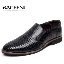 百臣 大码男凉鞋夏季真皮正品务商务休闲透气皮鞋打孔镂空45 46