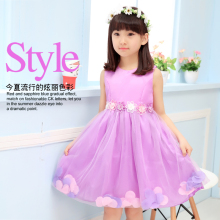 女童2017夏季装新款童装欧根纱优雅公主网纱裙摆花边裙中大童装裙