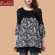 春装新款2017大码女装 胖mm蕾丝胖妹妹宽松上衣中长款白色打底衫