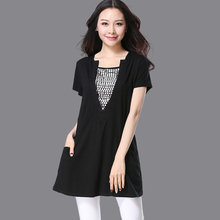 2017夏装新款时尚百搭体恤胖mm大码上衣韩版宽松中长款短袖女T恤