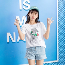 T恤女夏新款宽松百搭玫瑰印花体恤韩版原宿bf学生简约短袖上衣服