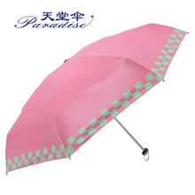 天堂伞2016新款三折折叠加大太阳伞防紫外遮阳伞晴雨伞格子伞两用