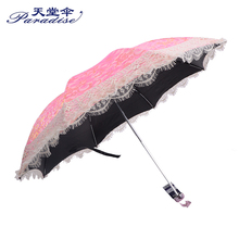 新款天堂伞三折黑胶防紫外线双层蕾丝花边刺绣晴雨遮阳创意太阳伞