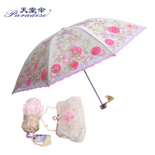 新款天堂伞防紫外线太阳伞三折折叠遮阳伞双层蕾丝绣花伞