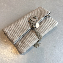 EMUA ◆ 实拍 出口单 狠气质的灰色 流苏扣压纹翻盖链条包手袋