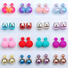 欧美时尚个性双面珠耳钉 女 防过敏耳钉耳环韩国地摊饰品包邮