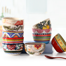 特卖 OMK手绘陶瓷碗 欧美式创意家用餐具米饭碗早餐麦片碗小汤碗