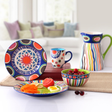 瑕疵满包邮快乐太太时尚个性釉下彩陶瓷西餐具碗盘杯组合套装新款