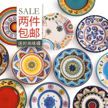 微瑕特卖 手绘陶瓷盘子家用中西餐具 创意饭菜盘果盘摆盘墙面挂盘