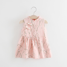 2017夏装季中国风女童连衣裙背心裙小童女宝宝棉麻印花旗袍裙子