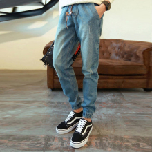春季青年哈伦裤男士牛仔裤束脚裤休闲弹力长裤修身小脚裤潮男裤子