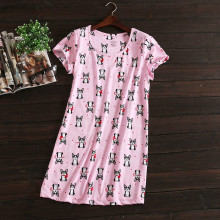 2件包邮大码 睡裙短袖夏天纯棉睡衣加大加肥女士家居服16浅粉小狗