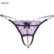女士开档性感丁字裤情趣透明内裤网纱内衣诱惑薄蕾丝免脱低腰T裤