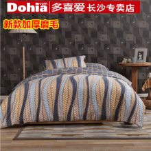 多喜爱磨毛四件套正品 纯棉条纹加厚法拉绒4件套230*229 爵士坊