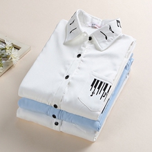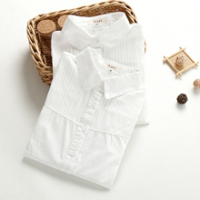2016秋装新款日系翻领绣花长袖白衬衫女 韩版修身打底纯棉衬衣潮