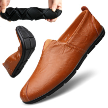 夏季男士休闲皮鞋男真皮透气牛皮豆豆鞋棕色软底软面皮懒人男鞋子