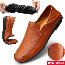 夏季男鞋真皮商务休闲皮鞋男夏镂空透气凉皮鞋软底豆豆鞋子男夏天
