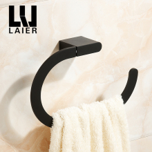 黑色简约橡皮漆毛巾环 卫生间毛巾挂卫浴挂件欧式毛巾杆不锈钢