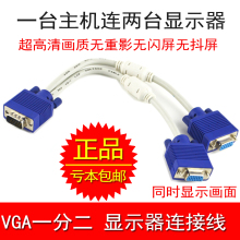 VGA一分二线分屏线 视频连接线 电脑显示器1分2同步共享线带磁环