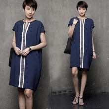 2017夏季新款裙子短袖宽松显瘦V领文艺中长款雪纺连衣裙大码中裙
