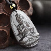 开光 天然黑曜石本命佛项链 大日如来菩萨生肖羊猴守护神吊坠