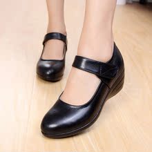 女式单皮鞋真皮坡跟春鞋女鞋单鞋黑色工作中跟女士软底41码妈妈鞋