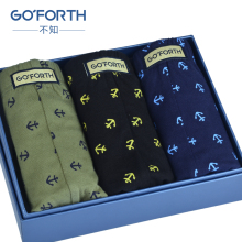 不知男士内裤全棉平角裤四角裤透气U凸设计中腰裤头3条礼盒装包邮