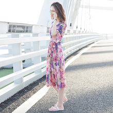 雪纺连衣裙女夏2017新款波西米亚长裙沙滩裙海边度假碎花女装
