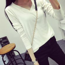 春秋新款韩版显瘦纯色V领长袖t恤女学生大码打底衫修身小衫上衣棉
