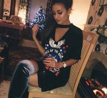 亚马逊 ebay wish爆款 老鹰摩托车印花挂脖性感T恤 361