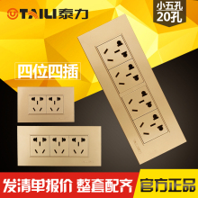泰力香槟金12孔开关插座 118型十二孔 四位4联五孔20孔电源插座
