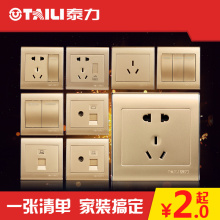 泰力开关插座香槟金 86型暗装五孔电源插座 5孔插心二三孔扦面板