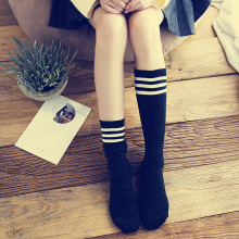 条纹三杠中筒韩国堆堆袜竹节纱粗线袜女士短靴长筒高筒街头长袜子
